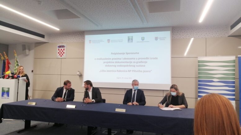 U Zagrebu je održano svečano potpisivanje ugovora o provedbi izrade projektne dokumentacije za građenje vodoopskrbnog sustava LIČKA JASENICA-RAKOVICA- NP PLITVIČKA JEZERA , na kojem je uz ministre Ćorića i Božinovića, županicu karlovačke županije Furdek Hajdin, direktora Hrvatskih voda Zorana Đurokovića i ravnatelja NP Plitvička jezera Tomislava Kovačevića nazočila i zamjenica Ličko-senjskog župana Jasna Orešković Brkljačić koja je pozdravila sve prisutne u ime župana Ernesta Petrya kao i u svoje osobno ime.